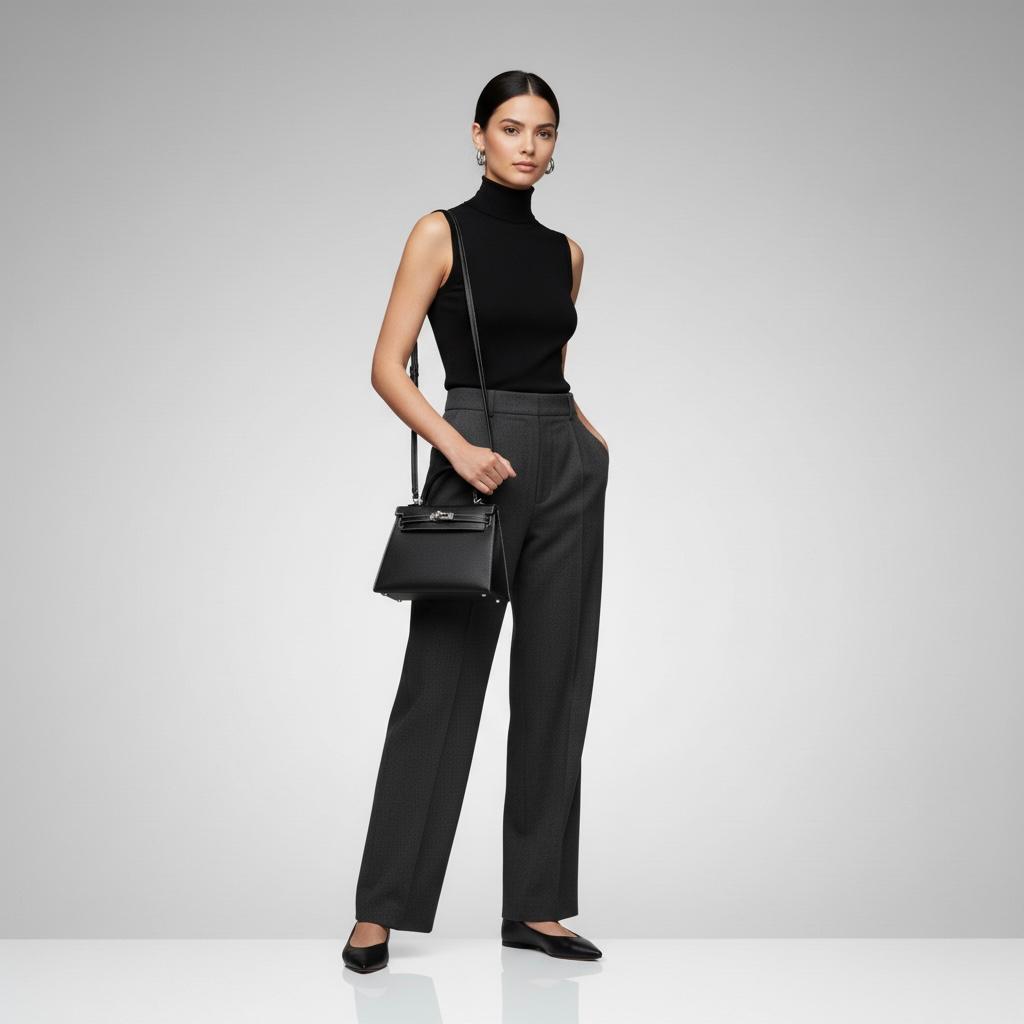 | Bolso Mini | Material: Piel de becerro rígida y pulida con acabado semi-brillante. |