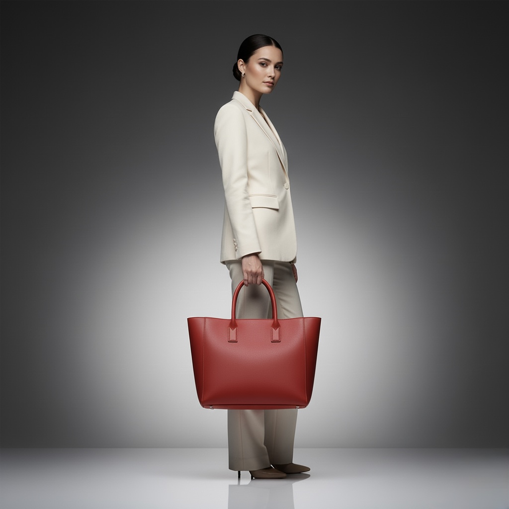 | Bolso Tote Grande Rojo | Material: Piel de vacuno de tacto liso y acabado sutilmente brillante. |