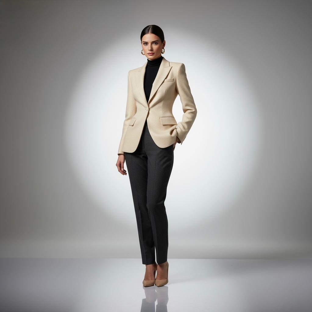 | Chaqueta Blazer Sastre | Material: Mezcla de Lino y Crepe de alta calidad, que proporciona estructura sin sacrificar la caída. |